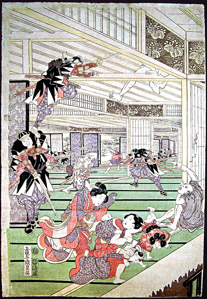 For instance, if using a bokken, broom handle or similar object, rapidly repeated thrusts rather than “cutting”/striking techniques may be more effective and beneficial, keeping the opponent at a distance and even increasing it by pushing them back with one’s thrusts. Perhaps the optimum positions for this purpose are those known in a certain school of traditional Japanese swordsmanship as as gedan no kamae (下段之構, “low-level posture”) and tosui no kamae (棟水之構, “ridge water posture”), since they allow for a clear field of vision from ceiling to floor while also being poised to preemptively attack by simply raising the wooden training sword, broom handle or similar object while stepping forward to thrust aggressively and repeatedly at any threat within range. Moreover, compared with other possible postures, it is much easier to avoid announcing one’s approach by allowing one’s weapon to protrude beyond the corner, thus giving away one’s presence prior to clearing around the corner.